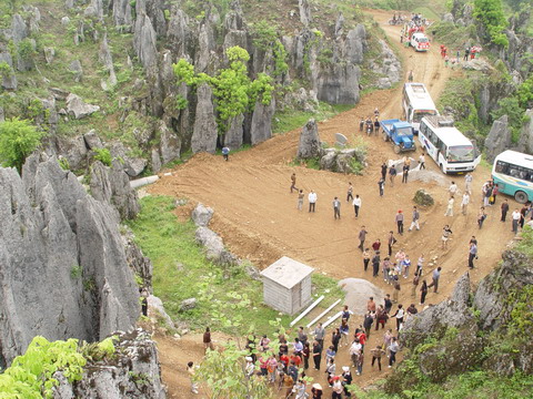 登上洛塔,只見連山綿谷,萬石如林,一塊塊青灰色的大石頭競高競秀,競美競奇,綿亙縱橫,層疊交錯,造型奇特,塔狀、蓮臺狀、羅漢狀、錐狀、刀狀、箭簇狀、帷幕狀等林立薈萃,像一個個神奇的迷宮,組成洛塔地質(zhì)公園的旖旎景觀。有的玲瓏斫剔,若女繡工鐫;有的嶙峋怪異,如鬼斧神鑿;有的崢嶸巉峻,似水墨丹青;有的嵯峨兀立,藤蔓纏繞,更像一株株挺拔的古樹。高的、矮的、大的,細(xì)的。粗、瘦、皺、滑,各具特色,如人之面目相具而無一相似者,在綠樹紅花間亮麗起一道道迷人的風(fēng)景。洛塔石林遍及整個山界,較集中的有楠竹車水坪石林、梭洛趙家灣石林、八仙洞石林及公路沿線的銀河塔石林,僅車水坪一帶的石林面積就達(dá)1000多畝。無論其規(guī)模面積,造型及組合情況,洛塔石林都可與云南石林媲美。