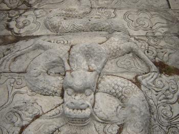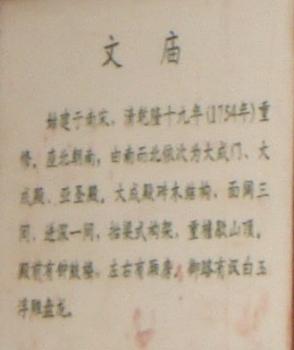 廟前面有學(xué)宮坪,亦名學(xué)坪,坪南端有大明壁。廟宇紅墻黃瓦,氣勢(shì)宏偉。正門(mén)曰奎星門(mén),前院左右各植檜樹(shù),常年翠綠,散發(fā)幽香。奎星門(mén)內(nèi)有月形泮池,池周護(hù)以石欄。泮池附近有石坊三座,正南石坊匾額鐫有“斯文在茲”四字,東西兩坊貫通街衢。通過(guò)石坊便是大成門(mén)。進(jìn)門(mén)左右是飛檐綠瓦的鐘鼓亭。大成門(mén)通向大成殿,有石鋪甬道直抵大殿臺(tái)基。臺(tái)高一米,全系石塊疊成。臺(tái)階分左右兩道,中有石雕盤(pán)龍,綴以云海波濤,栩栩如生,躍然石上。大成殿為歇山式重檐結(jié)構(gòu),周圍有16根圓石柱,內(nèi)外枋、檁、藻井、斗拱、扇梧均五彩施繪,黃瓦飛檐,蔚為壯觀。殿后有亞圣殿,與大成門(mén)、奎星門(mén)前后襯應(yīng),更顯出大成殿主體的雄偉。