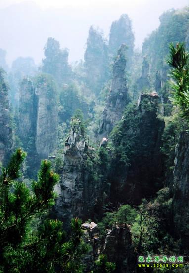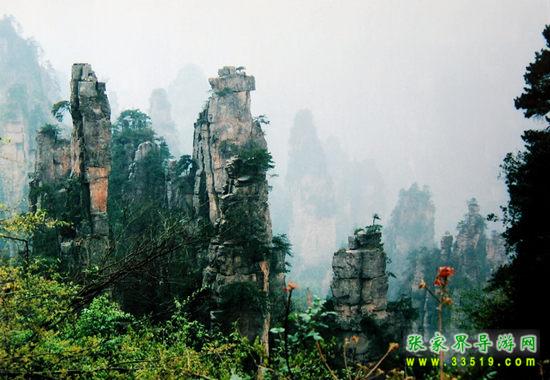 數(shù)以千計(jì)的奇峰怪石拔地而起森列谷中。在建筑師看來,石峰如塔、如柱、如屏、如樓、如堡、如墻,鱗次節(jié)比、錯(cuò)落有致,展現(xiàn)了一幅宏偉的建筑藍(lán)圖;在藝術(shù)家看來,石峰似人、似佛、似鳥、似獸、似花、似樹,似瓊樓玉宇,生動逼真唯妙唯肖,似一幅彩色的畫卷;在軍事家看來,石峰是將、是兵,是鼓、是旗、是車、是馬,威武雄壯嚴(yán)陣待發(fā),象一支天降的軍隊(duì)。