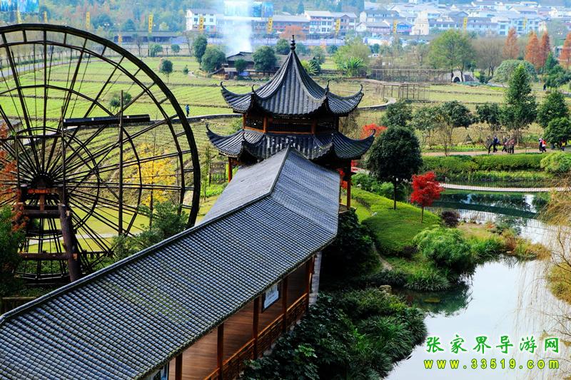 生態(tài)廣場(chǎng)共種植了近1600余株喬灌木,草皮、綠化工程共占地近3萬(wàn)平方米,是廣場(chǎng)總面積的61%。香樟、桂花、紫薇等四季常青的樹木爭(zhēng)芳斗艷,是人們休閑時(shí)的綠色伴侶。田園風(fēng)光與綠化景觀交相輝映,隔游道相望,農(nóng)田近2萬(wàn)平方米,集中在廣場(chǎng)東南部,水稻、玉米及各類果蔬與農(nóng)舍、家禽、和平鴿的融合,串連著鄉(xiāng)村小路,讓鄉(xiāng)野韻味達(dá)到了極致。水車、石磨,還有蒼勁的風(fēng)水樹仿佛將人們帶入了一個(gè)古老的世界,石拱橋、鐵索橋與斗拱建筑渾然一體,既有江南水鄉(xiāng)的柔美,又不失土家特色。