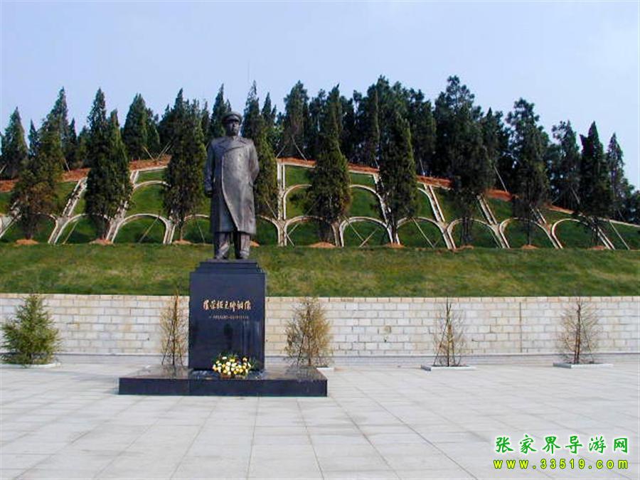 羅帥銅像座落于楊山北坡,占地180余畝。南依青山,翠綠欲滴,北傍洣水,舟楫竟帆。主要建筑有牌樓、廣場、羅帥銅像和展室。牌樓插拔、氣宇軒昂。廣場全由南岳山麻石鋪砌,寬闊曠達,兩旁皆有花卉點綴,優(yōu)雅沁心。羅帥銅像屹立廣場之正后方,面東偏北,似凝眸故鄉(xiāng),情絲綿綿;如揮師沙場,威嚴赫赫。底座由江澤民主席題字: “ 羅榮桓元帥銅像 ” 。