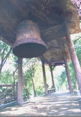 飛來鐘原為君山崇勝寺的古鐘,南宋淳佑五年(公元 1245 年),荊湖安撫制置使孟珙重修崇勝寺時(shí)復(fù)制一鐘,鐘高一丈多,大數(shù)圍,重4000余斤,上有“淳佑五年造”,鐘身上鑄有“皇帝萬歲,國泰民安,風(fēng)調(diào)雨順,五谷豐登”16 個(gè)大字,四方凸出的部分用青銅澆鑄的四條金龍,栩栩如生,形態(tài)逼真。原鐘在1966 年被砸毀,現(xiàn)在的飛來鐘是1979 年由市閥門廠復(fù)制而成,高約2 米,直徑1.2 米,重約 2 噸。鐘身上改鑄著鐘相、楊幺起義的戰(zhàn)斗口號(hào)“均貧富,等貴賤”六字,比前者更富有深刻的含義。這口古鐘有段優(yōu)美的傳說。相傳南宋初年,洞庭湖畔數(shù)以十萬計(jì)的農(nóng)民在楊幺率領(lǐng)下,掀起了轟轟烈烈的農(nóng)民起義。相傳一天夜晚,朝廷派兵前來偷襲駐扎在君山的楊幺寨,忽然從天上飛來一口巨鐘,鐘聲陣陣,催醒義軍,奮起抗敵,因此叫飛來鐘。這是人們深切懷念楊幺起義軍,用各種方式來表達(dá)贊美之情。古鐘的傳說便寄托了人們的這種心情。有人據(jù)此認(rèn)為,原來的飛來鐘系楊幺起義軍所鑄的報(bào)警器。