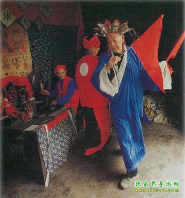 儺戲在湘西土家族地區(qū)也稱儺堂戲、儺神戲,它與土家族原始巫教、巫術的關系極為密切。土家族先民信奉的神有儺神、八部大神、土地神等,作為一種宗教活動,這種原始信仰與社會生產(chǎn)活動、文娛活動及民族習俗是融為一體的,因此儺戲最先的“沖儺還原”帶有明顯迷信色彩,土家族群眾中有“一儺沖百鬼,一愿了千神”的說法,湘西土家族人干脆叫它為“神戲”。湘西土家族儺戲的發(fā)展過程大體是儺、儺舞、儺儀然后才產(chǎn)生儺戲。儺舞源于久遠的蒙昧時期,土家先民們在同大自然作斗爭、同毒蟲猛獸作斗爭,便產(chǎn)生了化裝護面、在鼓樂聲中奔騰呼號、沖殺跳躍的原始儺舞,其所模擬的鳥雀舞、猿猴舞、熊舞等頗為壯觀。儺舞與儺這種驅(qū)鬼消災的祭祀儀式結合后,增加了祈求人獸平安、五谷豐登、緬懷祖先、勸人去惡從善、以及傳播生產(chǎn)知識等內(nèi)容,這就逐漸形成了兼?zhèn)潢U弘教義及娛樂性質(zhì)的祭祀風俗歌舞。[2]土家族儺戲就是在此基礎上發(fā)展起來的。部分土家族學者認為土家族儺戲的遠源可以追溯到戰(zhàn)國時代的《九歌》,《九歌》是土家族儺戲的雛形,他們的依據(jù)是當時楚國的沅湘流域,人們“信巫鬼、重淫祀”(《漢書·地理志》),從而使得“陰陽人鬼之間,又或不能無褻慢淫荒之雜”(宋代朱熹《楚辭集注》)。屈原正是加工整理了這一類“鄙陋”之詞,才創(chuàng)作出《九歌》、《天問》等名篇。也有部分學者不贊同這種論點,他們認為土家族儺在宋代還停留在儺祭和儺舞階段,最遲到明代,土家族儺才發(fā)展成為儺戲[3]。嘉靖《常德府志》記載:“歲除,歲將盡數(shù)日,鄉(xiāng)村多用巫師,朱裳鬼面,鑼鼓喧舞竟夜,名曰還儺。”文中未點明“儺戲”二字,但卻使用了“還儺”一詞,這與今天民間對儺戲的稱呼相似。又據(jù)清乾隆《永順縣志》載:“永俗酬神,必延辰郡巫師唱演儺戲,……至晚,演儺戲。敲鑼擊鼓,人各紙面一,有女裝者,曰孟姜女;男扮者,曰范七郎。”在土家族儺戲中,孟姜女傳說故事占著非常重要的地位。在湘西土家族地區(qū),儺戲一般有二十四正戲,即二十四戲神。每次儺儀結束時,巫師要用香火在黃裱紙上燒二十四個洞,以表示奠祭二十四戲神。民間有諺語:“儺神菩薩不識字,只要二十四個圈圈滿。”在二十四儺神中,被稱為勾愿神的姜女、范郎是還儺愿時非常重要的兩位神靈。在儺戲中,《孟姜女》是整場的高潮,平時,儺戲唱完后,由沒下裝的孟姜女、范郎去向主人家及觀眾“拜臺”,以示“了愿”。清代中期以后,儺戲吸取了花燈、陽戲、高腔等其他地方戲劇劇種的唱腔和劇目,逐漸變得日益成熟。我們仔細查看了全國371個劇種,發(fā)現(xiàn)儺戲、花燈戲有著相同的班社,也就是說一個演出班社可以演出儺戲、花燈戲兩個劇種。這段時期,儺戲已作為獨立戲劇劇種參加演出。由于儺戲是由巫儺法事演變而成的戲劇形式,經(jīng)歷著巫儺法事(驅(qū)鬼祭祀)、儺壇上戲和儺堂正戲的發(fā)展過程。