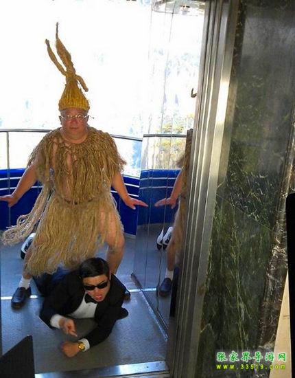 2012年10月31日,張家界市旅游局副局長(zhǎng)、正處級(jí)調(diào)研員鄭亞平在張家界版《江南style》MV中客串“稻草鳥叔”,在劇中表演得入木三分。這位身著稻草的長(zhǎng)者跨在一位年輕“帥哥”身上跳舞,動(dòng)作之滑稽,表情之搞笑,可謂“史上最鳥的旅游官員”。鄭亞平坦言:“我年近60,在退休之前為張家界的旅游發(fā)展多奉獻(xiàn)自己,退休后我才不會(huì)遺憾!”
