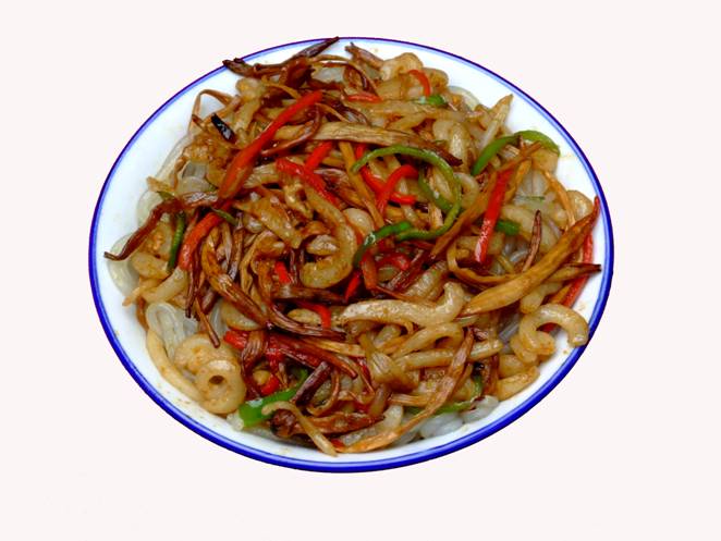 《張家界草帽面》。 這個(gè)名字的由來是因?yàn)槔习宄D甏髦菝辟u面,臊子非常香,可以添加,面是他自己加工的據(jù)說是全手工的,老板人很古怪,每天只賣那么一點(diǎn),以前更古怪,只有星期1、3、5的晚上9點(diǎn)才有賣,想吃他家的草帽面居然還得跟他打電話問他是否心情好,出不出來賣面?預(yù)約了才不會(huì)撲空。但是就因?yàn)檫@點(diǎn)神秘,所以他家的面有些神話色彩。在汽車站口百貨大樓東門對(duì)面的巷子口,一輛板車上面掛了一頂草帽,那就是了,不過每天下午1點(diǎn)左右就沒了,要吃啊,嘿嘿,您趕早!能不能吃的上,得看您造化咯!