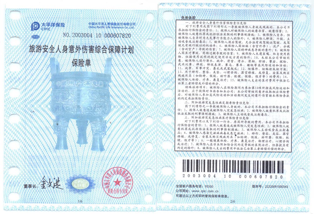 以下就是最重要的一個張家界核心景區(qū)所列的保險明細: