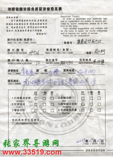 9月26日臺(tái)灣李先生一行7人接待質(zhì)量反饋單:
