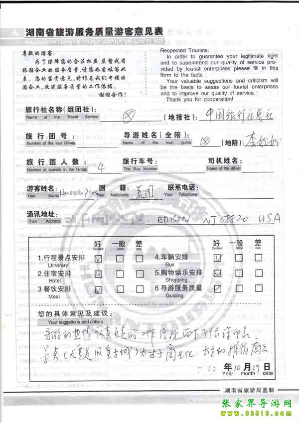 2010年10月29日美國Mr Pcm旅游旅游質(zhì)量反饋:導(dǎo)游認真熱情,印象很深刻