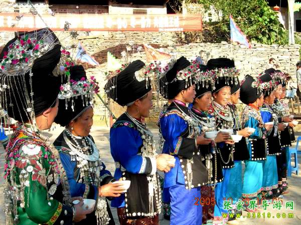 7 在苗王城!滿身銀飾的盛裝苗女會(huì)熱情卡歌、攔門禮捧上的是醇美的苗王米酒、青瓦木房里香噴噴的是苗家飯菜、紡車邊老婆婆與編織花帶的少女說的是難懂的苗話、多情黛帕留在英俊小伙臉上的是愛的鍋煙、古樹下迷狂娛神的是神氣的苗老司、赤膊小伙跳的是強(qiáng)悍、狂放的鼓舞、篝火晚會(huì)上縱情的是歡歌與笑語、、、、苗王城是迷人的所在!苗王城是醉人的地方??!